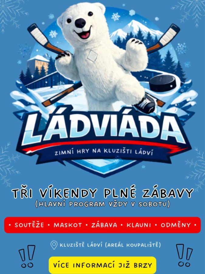 LÁDVIÁDA - winter games on the Ládví ice rink! We invite you to Ládviáda, a winter event where you can experience what it's like to be an Olympian - we will light the ceremonial torch, distribute accreditations, and compete together on the ice! The event will take place at the Ládví ice rink over three weekends. The main program will always be on Saturday - Sunday will serve as a supplementary day (a chance to complete activities and earn stamps for missed activities). The event is intended for children, parents, groups of friends, and anyone who wants to participate! Every Saturday, you can look forward to fun ice disciplines, the opportunity to try out sports, unconventional games, meet our mascot, and small rewards for participants. Our clowns will guide you through the entire event! You can come to compete, cheer, or just skate and spend quality time with family and friends. Detailed information and the schedule for each weekend will be published gradually.