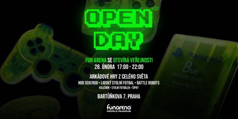 Open Day at Fun Arena – a unique cyberpunk space. Fun Arena is a unique event space in a dystopian cyberpunk style, unmatched not only in the Czech Republic but also in Europe. It offers a combination of extraordinary diverse activities (axe throwing, human foosball, an arcade with over 150 gaming devices, two indoor fields for paintball or airsoft, or NERF, and much more), modern technologies, and a distinctive atmosphere of a futuristic Cyberpunk world. The entire Fun Arena is stylized into the world of dystopian Cyberpunk, known for its specific design, technology, and colorful neon lights of the night city. People of all ages will find something to enjoy. However, Fun Arena is usually accessible only through private reservations for celebrations, corporate events, team buildings, or other group activities. The Open Day presents a unique opportunity to visit this space without the need for a reservation and without a minimum number of people, allowing you to try various activities at a favorable price. Due to high public interest, an additional Open Day has been added, which will take place on Saturday, February 28, from 5:00 PM to 10:00 PM. The program includes selected activities (Robot Combat, Arcade, Axe Throwing, darts, billiards, foosball, human foosball...) available at discounted prices through gaming tokens (Cyber coins), with some activities available for free. A bar with refreshments is also available.