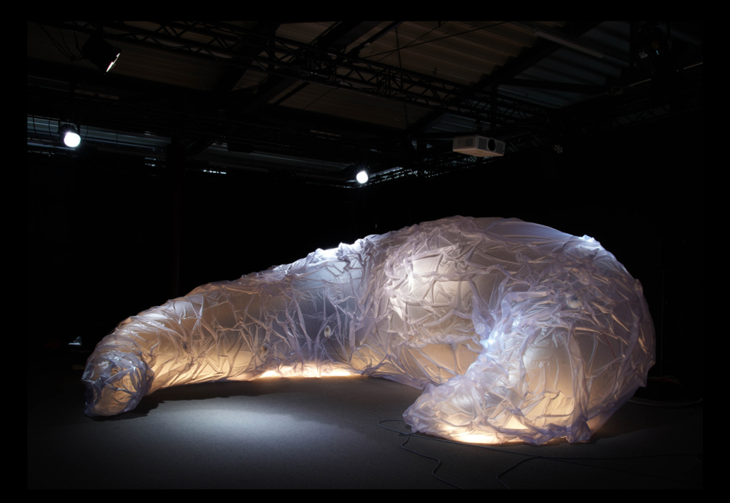 The title of the exhibition refers to the process of digestion, and the installations develop the motif of absorption, connecting themes and bacteria that we encounter in everyday life, from microbial pathways to changing ecosystems. All six installations can be approached in a completely open and playful manner, with soft and porous boundaries to their interpretation. Porosity is the principle of digestion. Permeable membranes allow the exchange of substances, fluids, and signals, through which the foreign becomes one's own. Similarly, porous boundaries allow perceptions and stories to be absorbed, transformed, and grow into a shared experience. This approach can also function as a form of care – leading from perception to calmness, from sharing to well-being (a sense of mental and physical health). This creates space and time for the absorption of thoughts, scents, and textures. The spatial, sound, and haptic gestures of the individual installations compose a whole that breathes at its own pace and creates a smooth rhythm flowing through the space. Sound recordings of metabolism or fermentation set the pace for the exhibition. These small events (the bubbling of intestines, microbial fermentation) translate into rhythms that the body can feel. They expand the possibilities of what can become a voice – and how healing can occur through it.