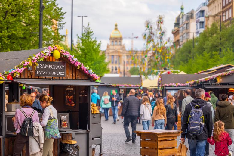 Opening hours Every day from 10:00 AM – 10:00 PM What products do the Easter markets offer? Vendors will offer a colorful selection of Easter goods and traditional handicrafts at the stalls. Visitors can look forward to Easter ornaments and decorations, hand-painted and decorated Easter eggs, decorative eggs made from various materials, Easter whips, and Easter candles made or decorated in the spirit of spring and Easter. The selection will be complemented by ceramics, original handmade jewelry, small gifts, and other creative decorations. There will be tastings of Czech sausages, grilled cheese, skewers, pancakes, mini doughnuts, potato pancakes, fruit skewers drizzled with chocolate, and other treats. At the Old Town Square, several charitable organizations will take turns selling their products at three stalls during the duration of the markets.