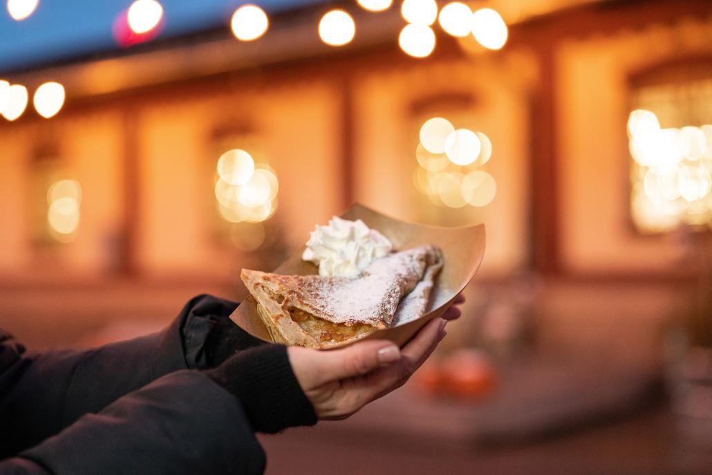 Every Advent Thursday, the square next to Hall 22 will come alive with film screenings under the open sky. In the winter cinema, you can enjoy the best Christmas and romantic films wrapped in a blanket while sipping mulled wine or hot chocolate, along with plenty of treats from the Food Truck Point. The first screening will take place on November 27, when the markets officially start.