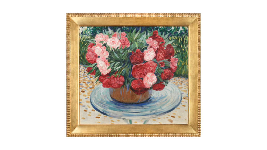 Among the most significant items of the spring auction is an oil of extraordinary quality by František Kupka, Pivoines (rouges et roses) / Paeonies (red and pink), from 1909 – 1910 with a starting price of 20,000,000 CZK. The work has a unique provenance, as it was initially part of the famous collection of Kupka's close friend, the industrialist Jindřich Waldes, and subsequently the ambassador Štefan Osuský, who persuaded Waldes to sell it. Correspondence between Kupka and Waldes from January 1921 has also been found related to the work. Osuský subsequently organized the only joint exhibition of František Kupka and Alfons Mucha, which took place in 1936 in Paris. The work is a testament to the author's rapidly changing artistic handwriting, which responded with extraordinary originality to the development of modern painting. At the same time, it foreshadows Kupka's abstract position, which began to manifest fully in the following year.