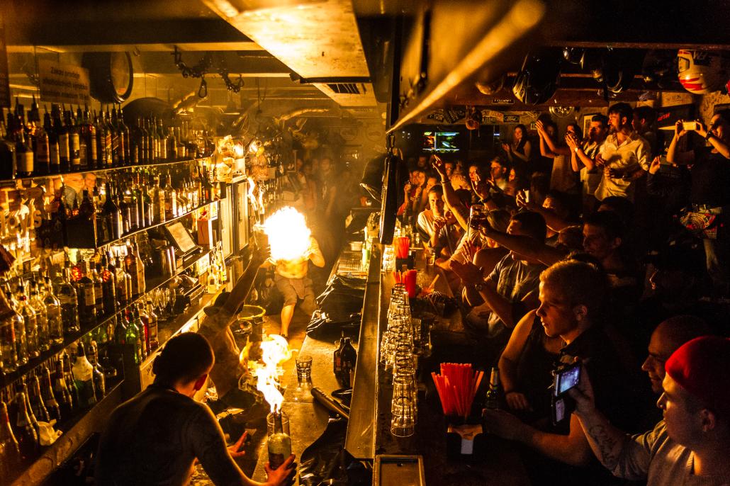Harly’s has no shortage of visitors. But it honestly does not matter what time you arrive. You will not want to sit down anyway. You will have an assault on your senses during the evening. And not only with great music and other visitors (there’s a lot to see), but also thanks to the bartenders who do not like to bore their customers and therefore regularly organize spectacular fire shows. And it does not stop there. If the ladies take a liking to the bartender, he might just put Jack in your mouth from a bottle right on the bar. And do not worry, gentlemen, it is not just for the fairer sex. Harly’s has its fair share of feisty female bartenders.